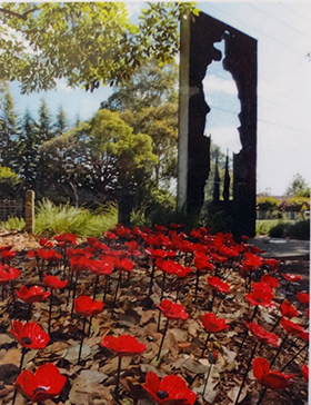 Many years ago the potters, who now occupy dormitory 16B, began making bright red ceramic poppies to be placed around the memorial for this day. They have proved very popular and are often purchased by those who attend the Remembrance Day Ceremony, many of them former students of the Masonic School and their descendants. Some of the poppies have been taken to the war cemeteries in Gallipoli and France. They are also popular with other local councils and schools.