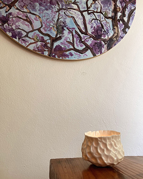 Jo-anne Fuller shares a studio in Artarmon where she makes both sculptural and functional ware, and exhibits in Sydney and on the Central Coast, where she and her partner Colin Husband share a cottage backing onto Brisbane Water National Park.